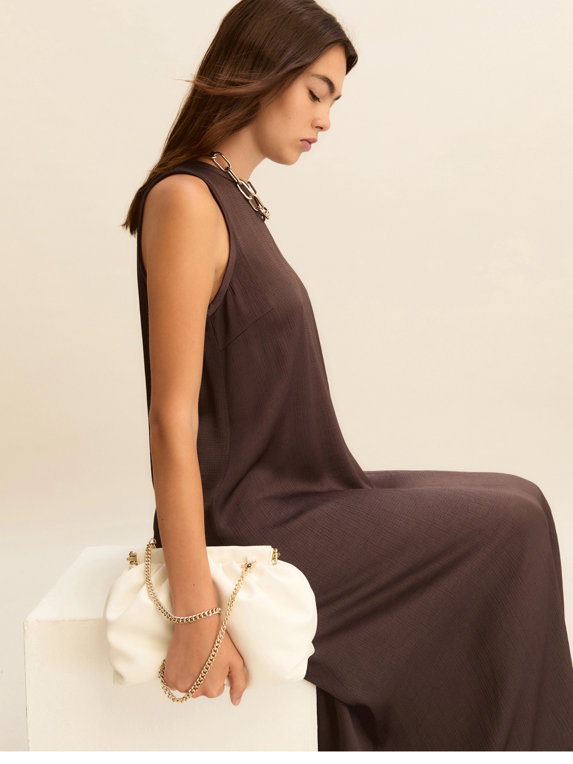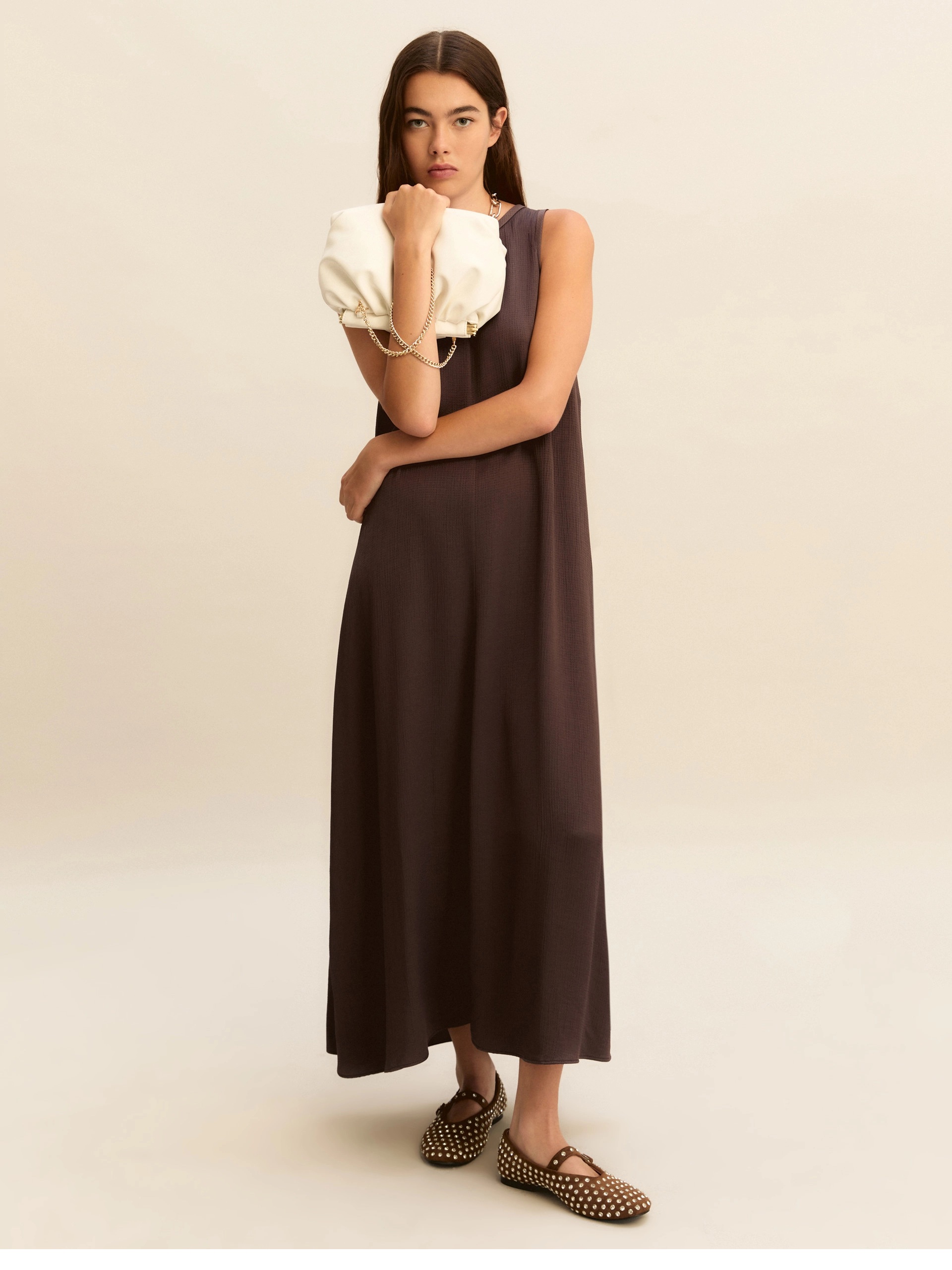 Fluido, smanicato, svasato sulla gonna: ecco l’abito cool da indossare a ripetizione quest’estate. Aggiungi sandali e bracciali scenografici, sarai subito pronta.