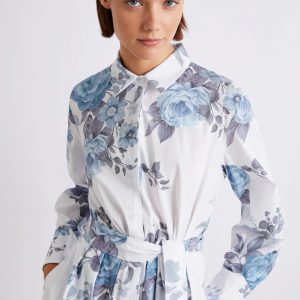 - Chemisier in popeline stretch di cotone stampato