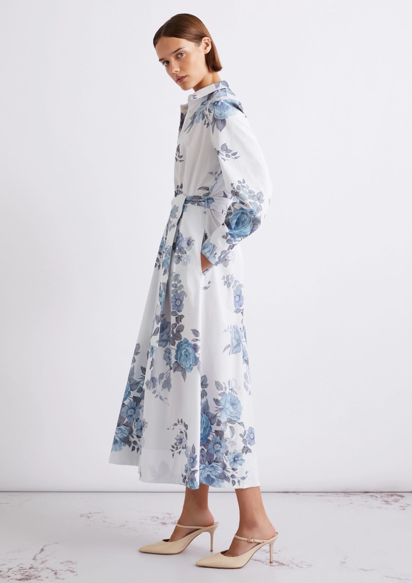 Fresco e leggero, lo chemisier in popeline è il capo passe partout della bella stagione. Con manica lunga e doppio bottone al polso, per una primavera all’insegna della versatilità.