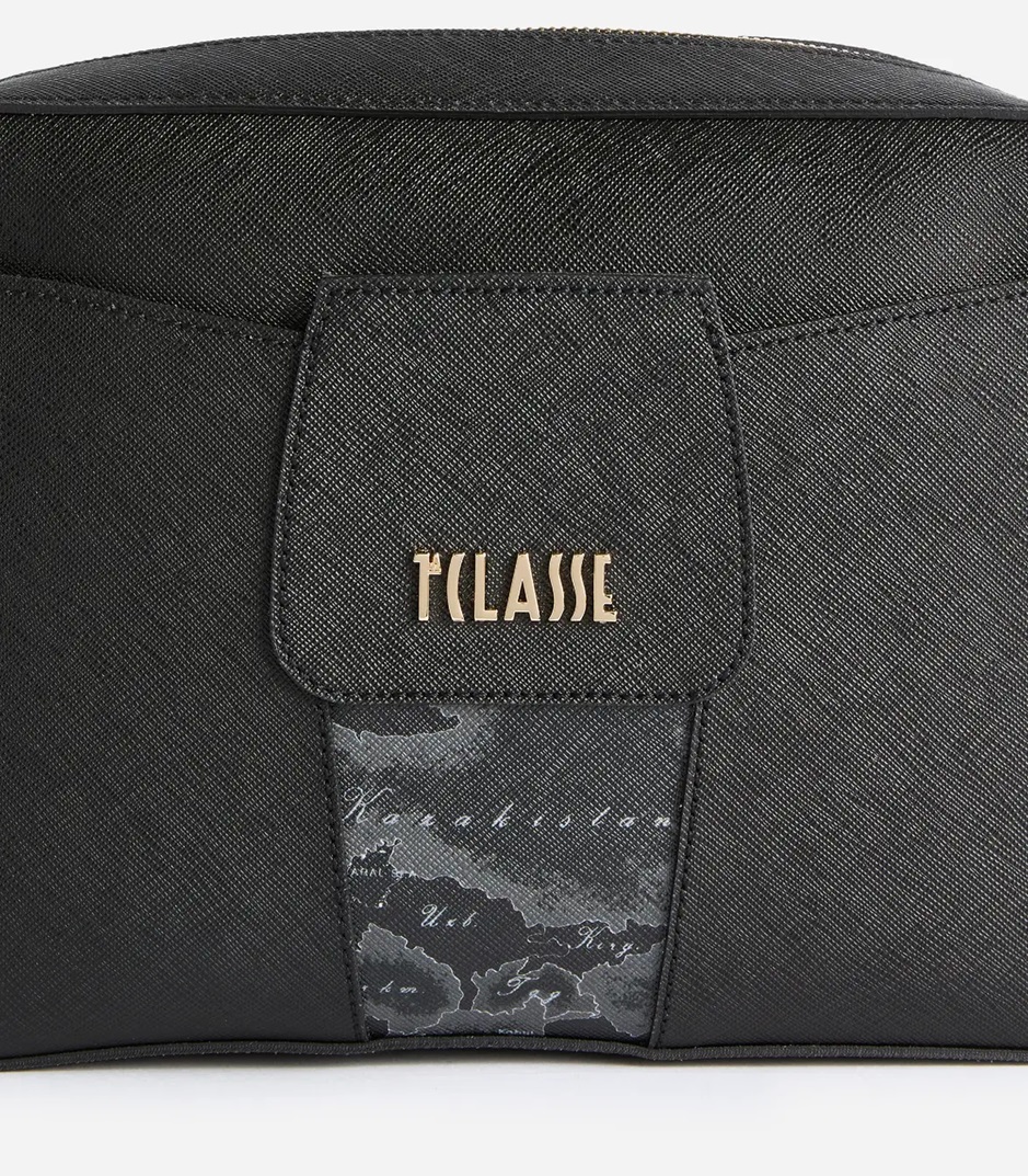L’animo urban della tracolla reporter Windy City guadagna un fascino magnetico grazie all’inserto in tessuto Geo Night: abbinandosi al tessuto saffiano nero e alla toppa sagomata con logo 1ᴬ Classe, crea un design suggestivo ispirato alle città scozzesi in inverno, striate di grigio e toccate dal vento. Il volume squadrato è provvisto di tasche interne e una tasca frontale, consentendo di portare con sé tutto l’essenziale per una giornata di esplorazione urbana.