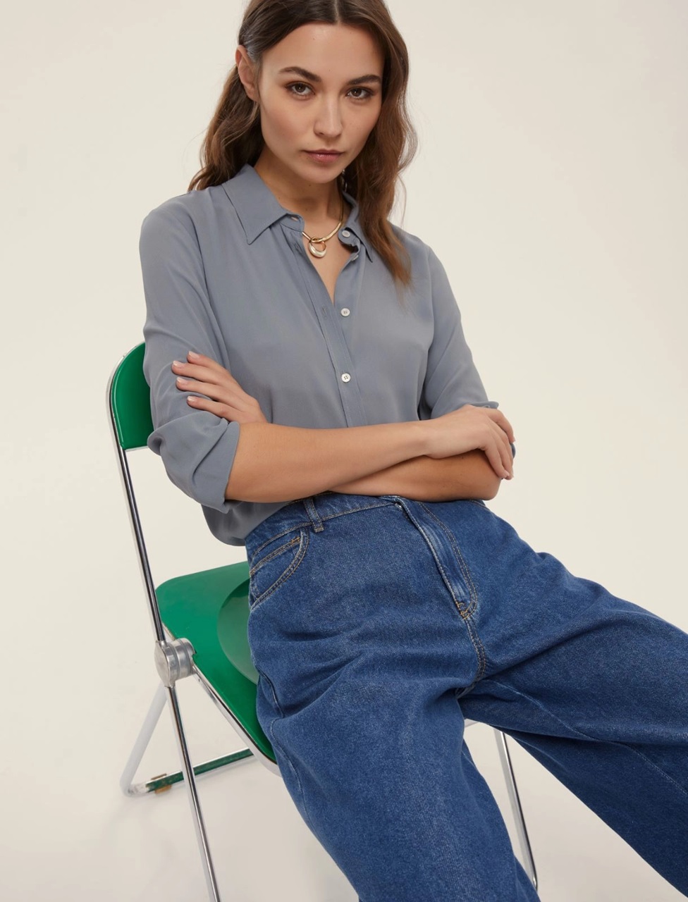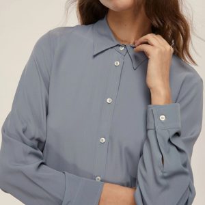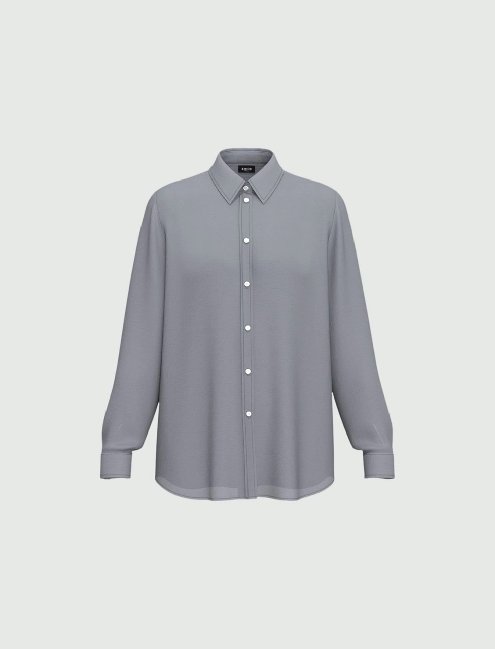 Nuova edizione della classica camicia femminile, in preziosa crêpe de Chine di misto seta. Essenziale nelle linee, ha tutta la versatilità che serve per accompagnarti dall’ufficio all’aperitivo.