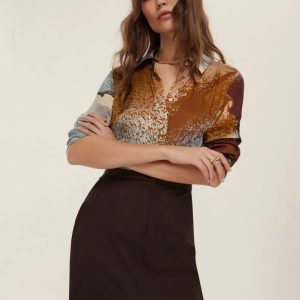 Lasciati ispirare dai colori e dalla fantasia audace di questa camicia in raso: facile da abbinare con blazer e longuette, o da indossare con i denim wide leg di collezione.