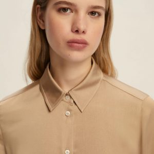 Un classico rivisitato con leggerezza contemporanea la camicia in raso martellato mixa la lucentezza fluida del tessuto a una linea essenziale. Il fondo stondato e il fit semi aderente la rendono ideale sia sotto un blazer che indossata a pelle, con naturale disinvoltura.