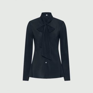Il morbido fiocco al collo aggiunge una nota romantica a questa camicia in pura seta. Intensa nelle nuance, elegante con pantaloni e maglieria dalle forme attuali.