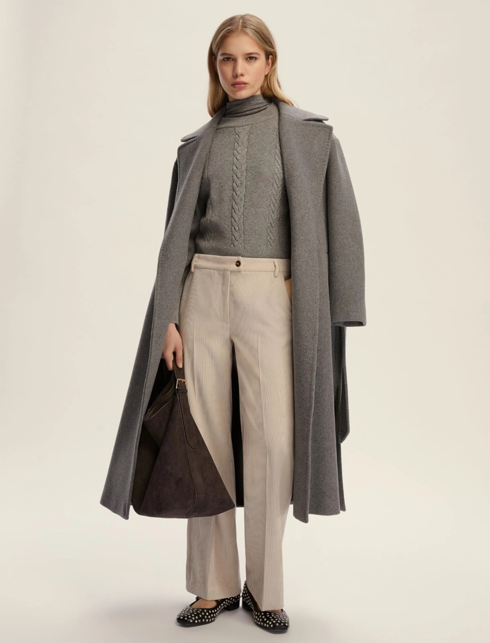 Le linee timeless del cappotto doppiopetto vengono proposte in un pregiato panno doppio firmato Manteco. Per look metropolitani avvolgenti, dal taglio essenziale e contemporaneo.