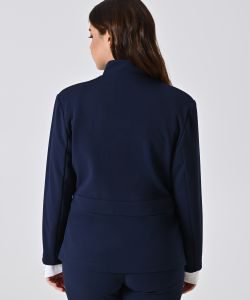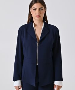 Descrizione e vestibilità Giacca Curvy Blu con Zip in Scuba mano Crepe