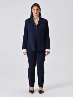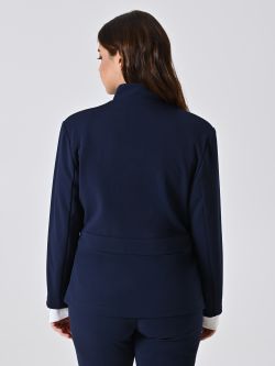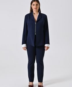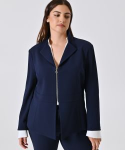 La Giacca Curvy Blu con Zip in Scuba mano Crepe unisce eleganza e modernità in un capo essenziale e versatile, pensato per valorizzare ogni silhouette.