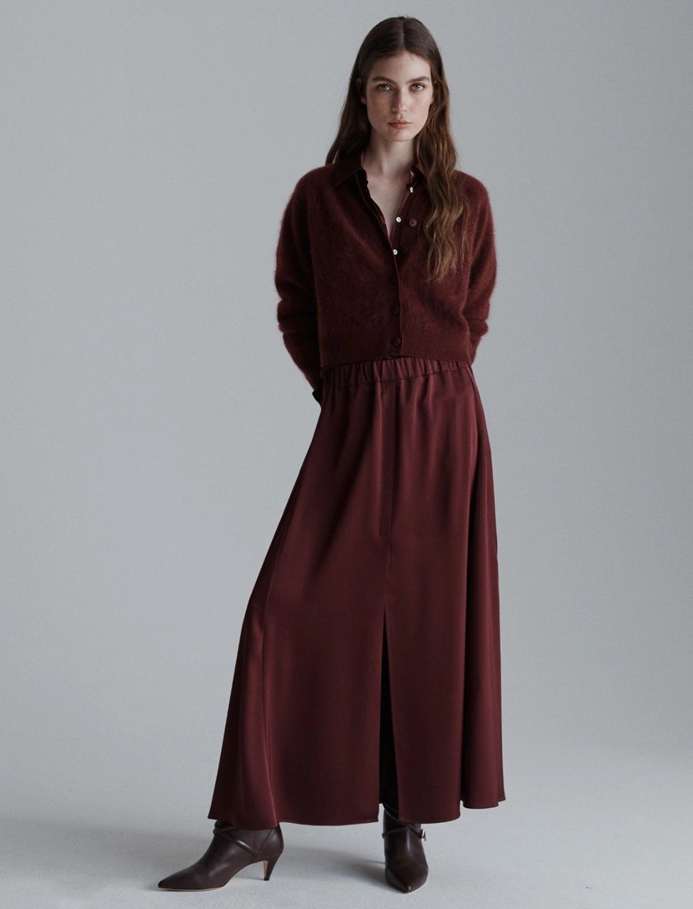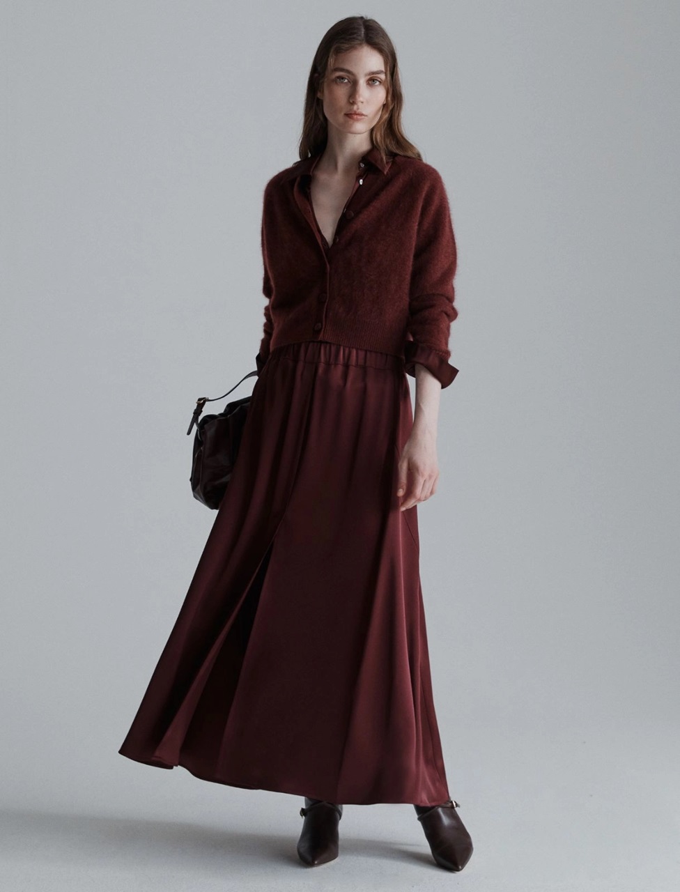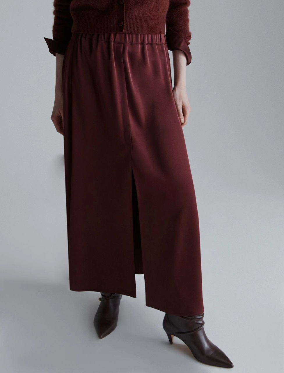 Fluido e ondeggiante, il raso aggiunge una nota sofisticata alla longuette svasata. Perfetta in ufficio, la sera o per le uscite con gli amici.
