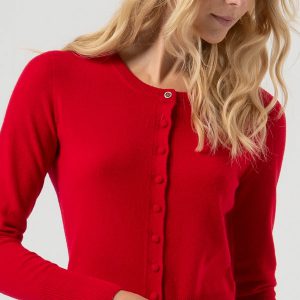 Cardigan slim in lana, girocollo, e con maniche lunghe.