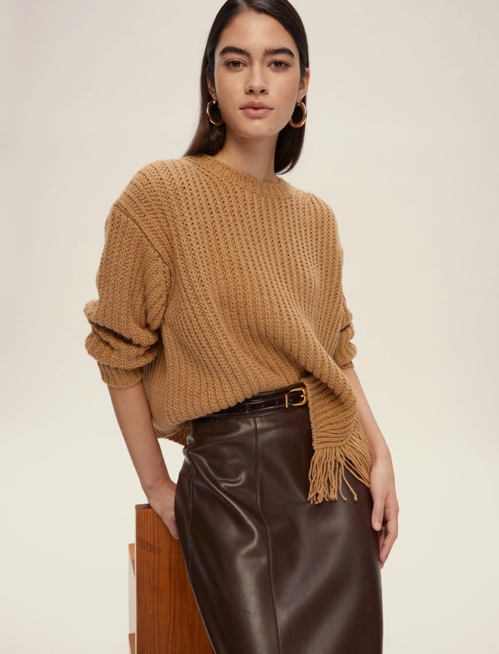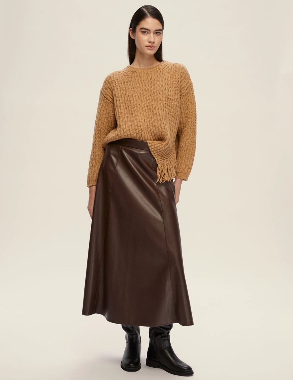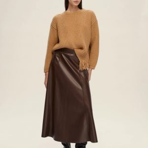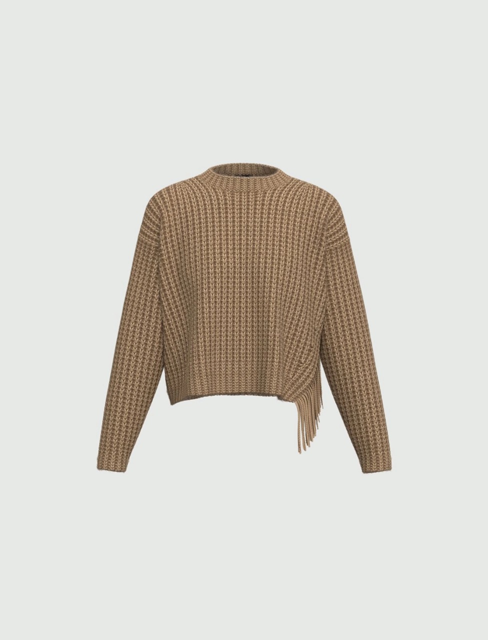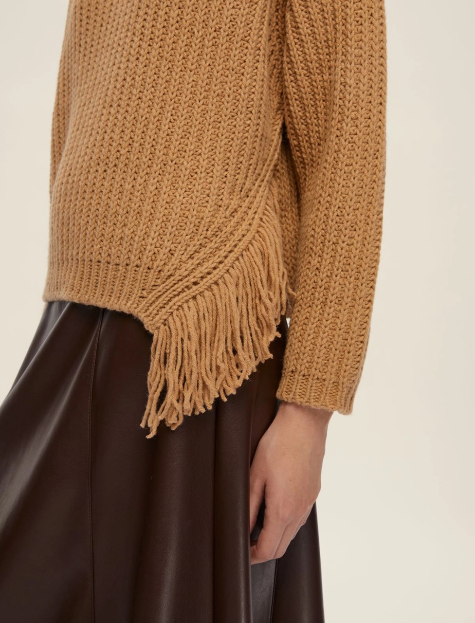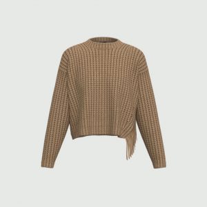 Un dettaglio inatteso decora questa maglia in misto lana: la frangia che scivola leggera dallo spacco laterale aggiunge movimento e personalità a un capo dal fit morbido. Perfetta con pantaloni sartoriali o con la gonna in pelle, per interpretare ogni giornata con un tocco folk metropolitano.