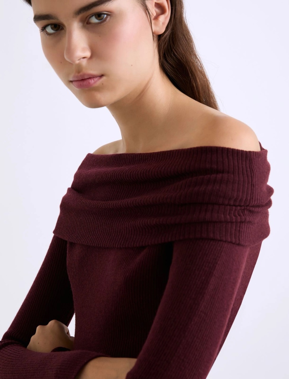 Aderente sul busto, questa maglia in pura lana extra fine presenta un collo ad anello che suggerisce styling versatili: semplicemente sul davanti, aperto sulle spalle.