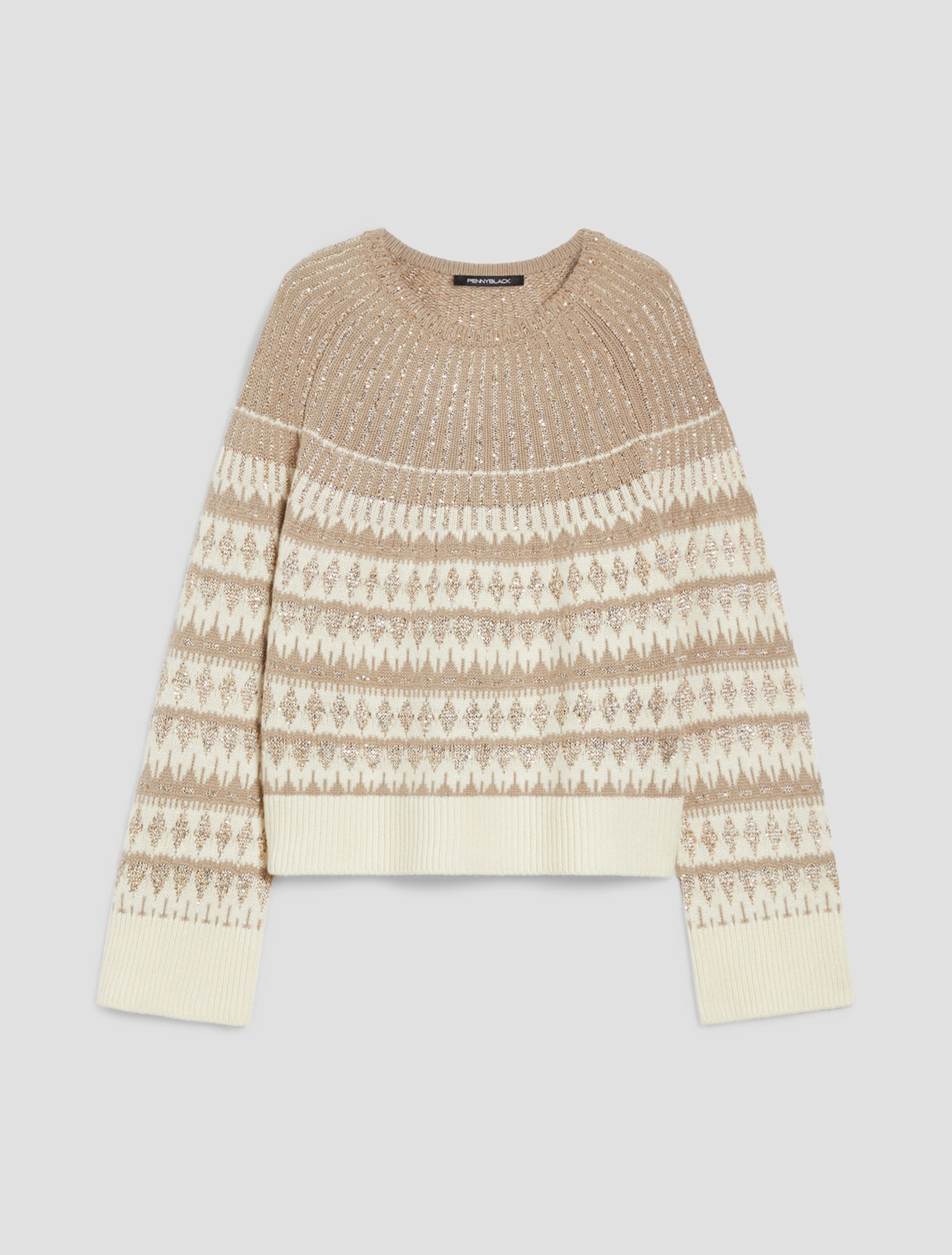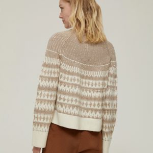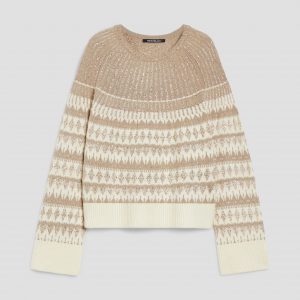 La maglia jacquard a motivi geometrici ha tutto il fascino del tricot nordico – e un tocco in più: arricchita da riflessi scintillanti, accenderà ogni look.