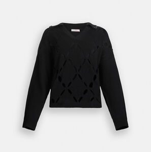 Un delicato disegno geometrico di losanghe dona leggerezza e trasparenza al capo. La sua trama ariosa e sofisticata è impreziosita da ricami gioiello per aggiungere un tocco glam ai tuoi look quotidiani.