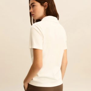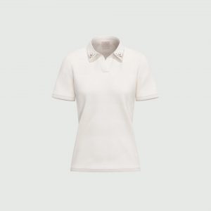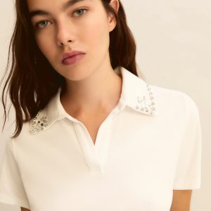 Casual nella costruzione, glamour nei dettagli: nuova polo in cotone stretch, con la classica apertura a V decorata da perle bijoux e cristalli ricamati. Un tocco di luce che rende speciale i tuoi look.