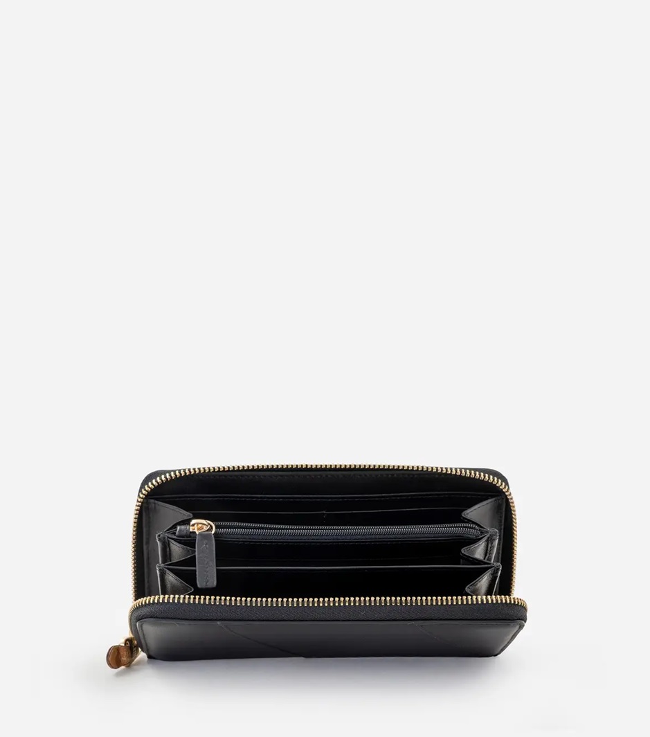 Il portafoglio zip around Celtic Nappa sfoggia un look lussuoso grazie alla pelle nappata, percorsa da tagli obliqui che incorniciano nell’angolo il logo 1C. L’interno è progettato per mantenere ben organizzato tutto l’essenziale per gli acquisti, rendendolo estremamente funzionale. Ideale da abbinare alle borse della Linea.