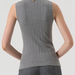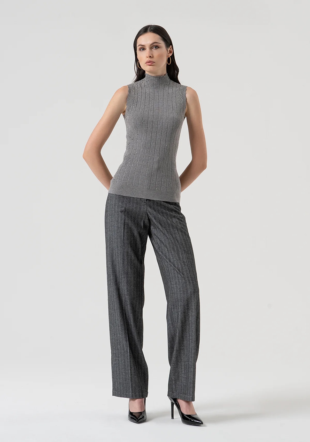 Top senza maniche in maglia a costine, con strass luminosi, e con collo alto.