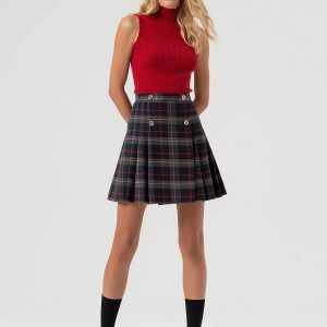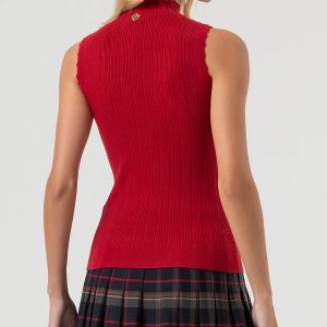 Top senza maniche in maglia a costine, con strass luminosi, e con collo alto.