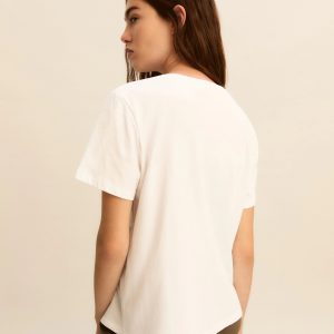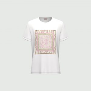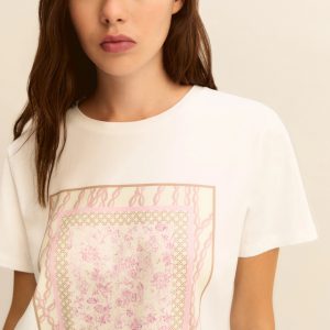 Pilastro del guardaroba estivo, la t-shirt in puro cotone è decorata da una stampa fantasia sul davanti. Perfetta sotto un blazer morbido, si abbina ai pantaloni fluidi di collezione o ai denim preferiti.