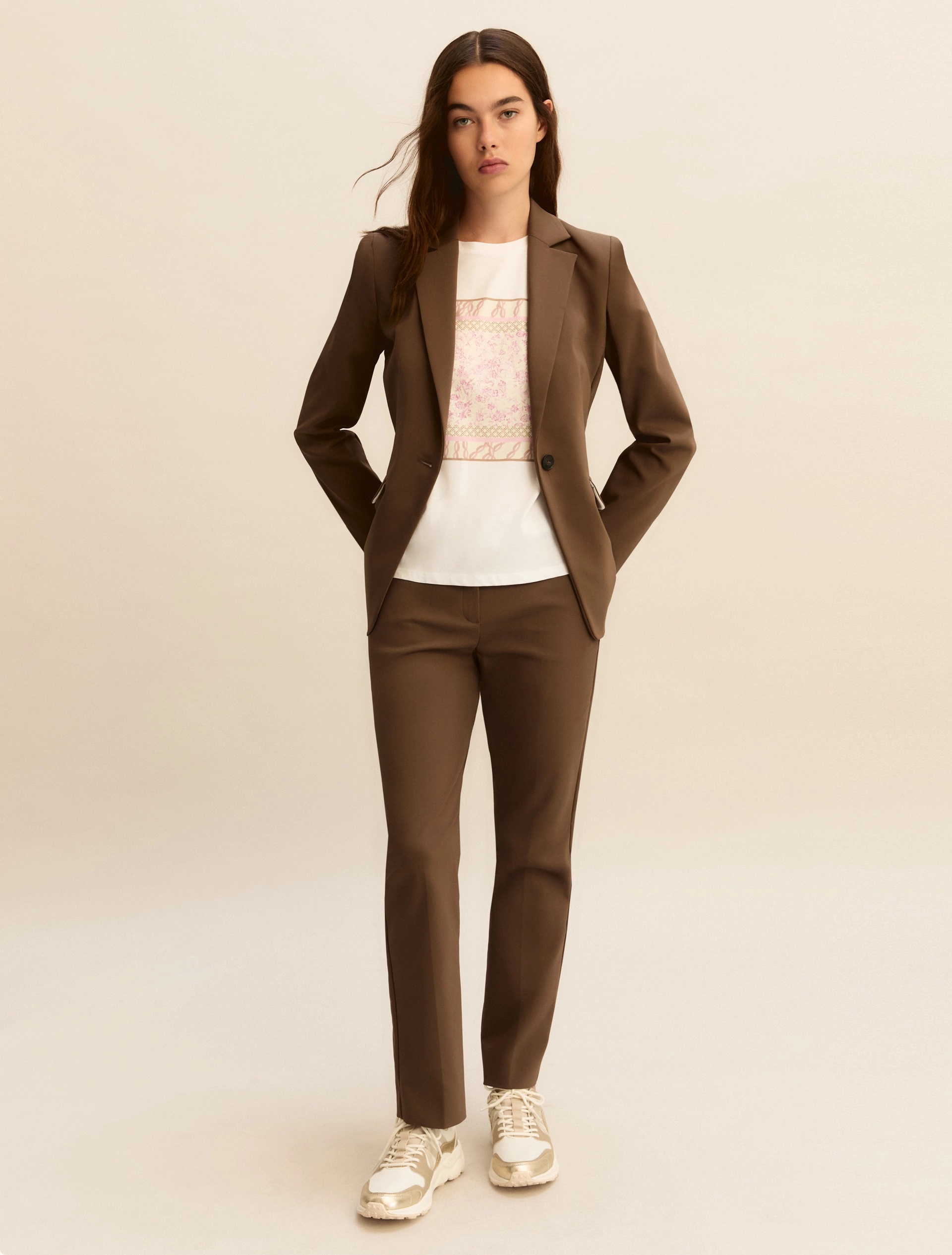 Pilastro del guardaroba estivo, la t-shirt in puro cotone è decorata da una stampa fantasia sul davanti. Perfetta sotto un blazer morbido, si abbina ai pantaloni fluidi di collezione o ai denim preferiti.
